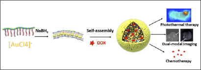 Schematic representation of synthesis of DOX@Gold NMs and their potential theranostic application